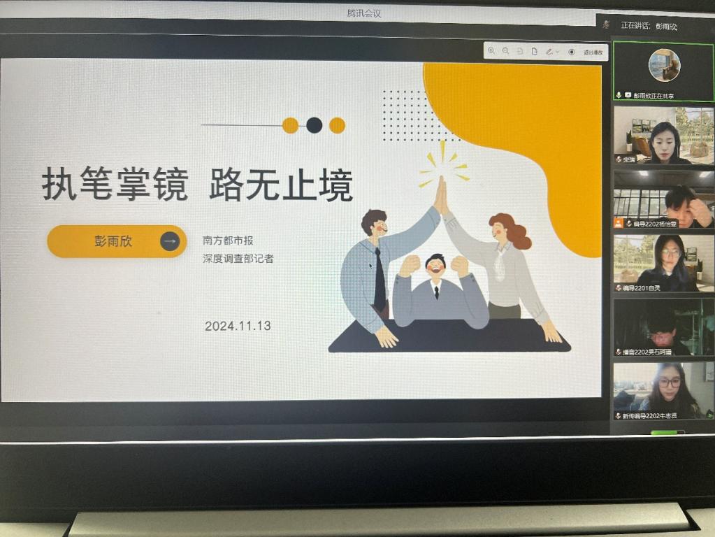 在就业成长模块,参与分享的校友有西安蓝话筒少儿播音主持培训机构执行校长及教研师训组长2019届毕业生杨雪艳;南方都市报深度调查部记者2019届毕业生彭雨欣;上海沐瞳科技发行中心抖音内容营销与直播生态业务负责人2022届毕业生王超;新疆生产建设兵团广播电视台新闻中心时政采访部记者2022届毕业生王程翔。他们分享了自己从大学到职场的成长历程,特别是如何快速适应职场环境,以及如何在职场中立足并稳步发展的经验。